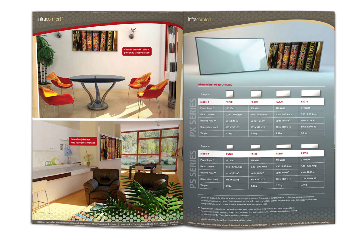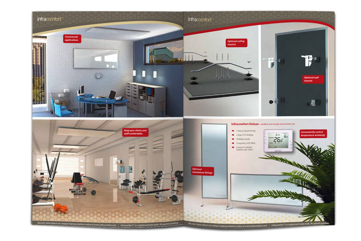 Infracomfort™ international brochure and 3D product visualisations. Created using Cinema 4D / Photoshop / Illustrator / Indesign.